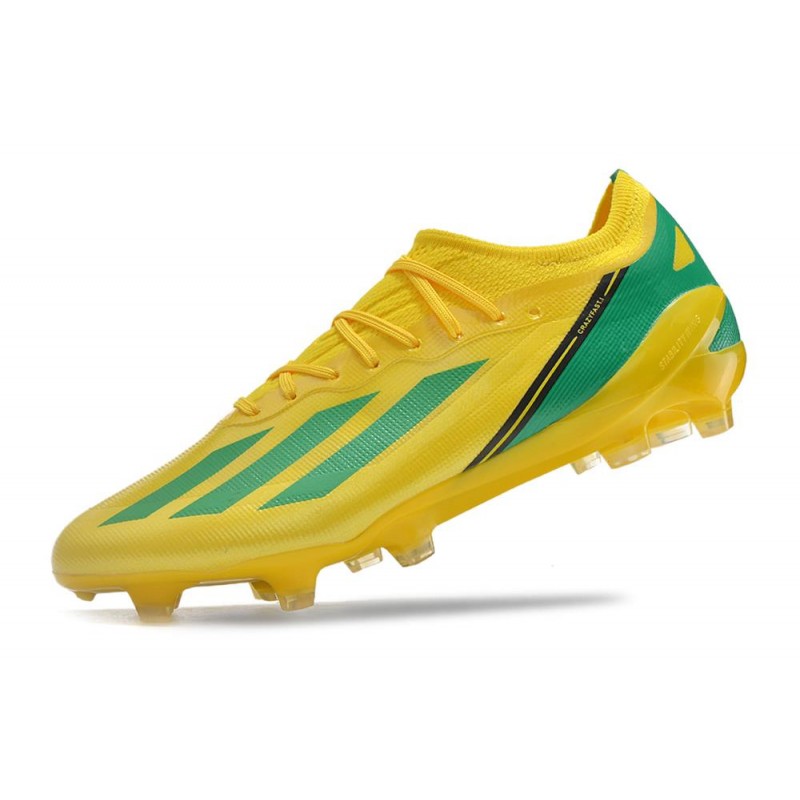 Les X CRAZYFAST. 1 FG sont composées d'une tige semi-transparente en Aeropacity Speedskin avec des renforts Aerocage. La semelle extérieure Speedframe est dotée de deux ergots supplémentaires et d'un insert Aeroplate pour une accélération supplémentaire.